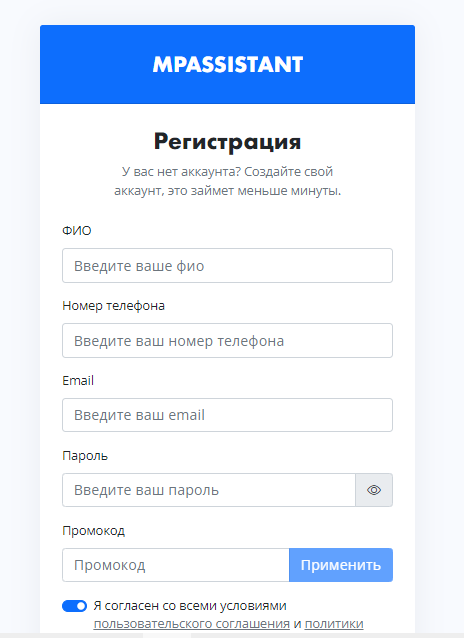Для начала регистрации в сервисе вам необходимо перейти в раздел Регистрация.
