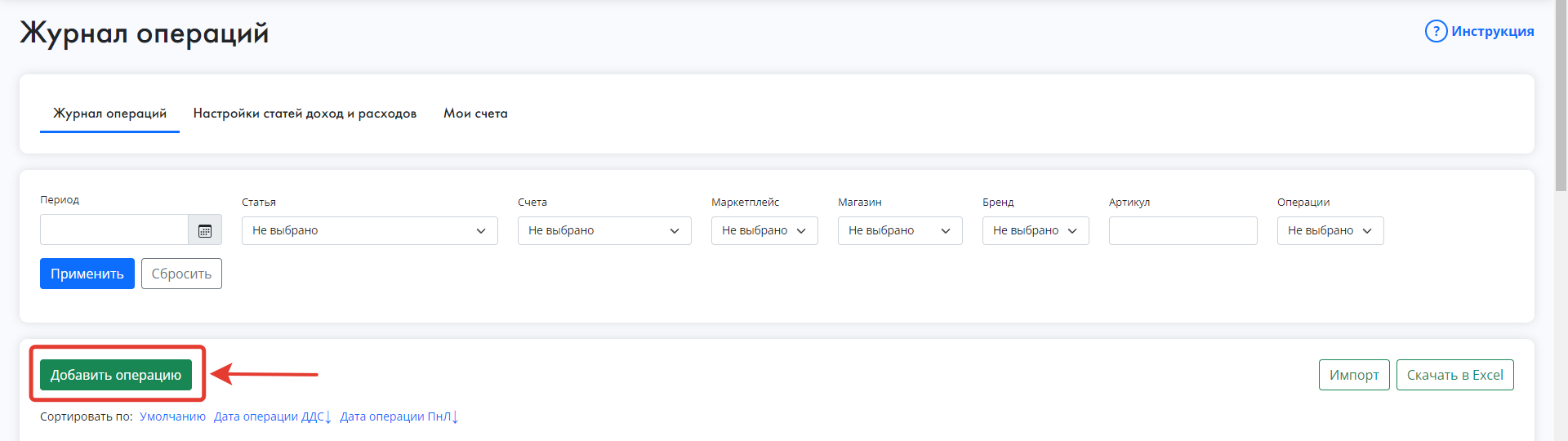В разделе нажимаете кнопку "Добавить операцию".
